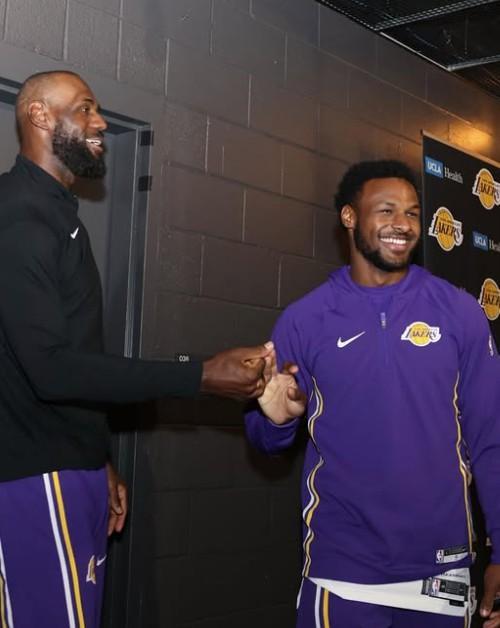 詹姆斯晒出了一系列的赛场照,主要是赛前热身时的照片,另外还有一张和儿子布朗尼的合照。